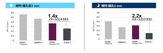 (1)非回折型で暗所視機能が良い 非回折型焦点拡張型のレンズ設計で、夜間のハロー・グレア現象がほとんどなく単焦点レンズと同等の暗所視機能を提供します。